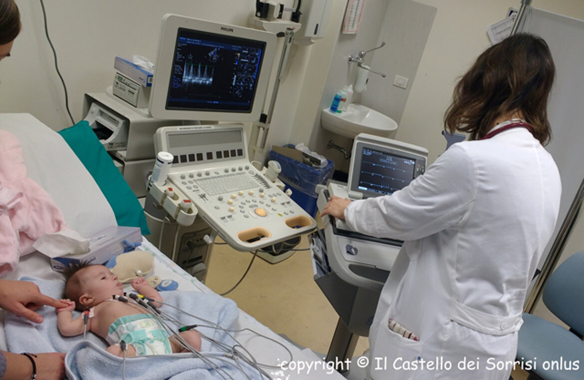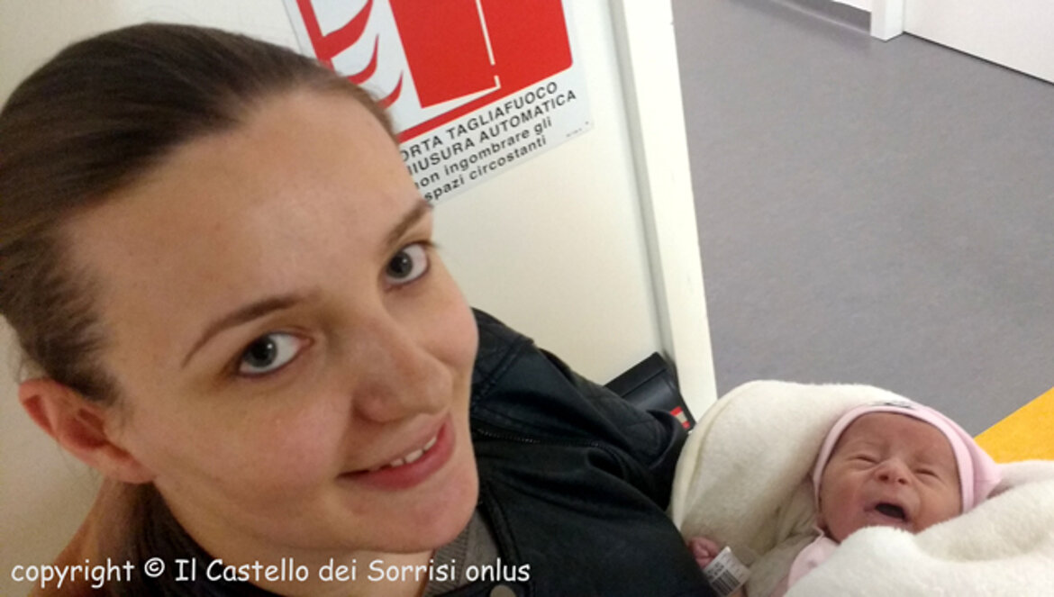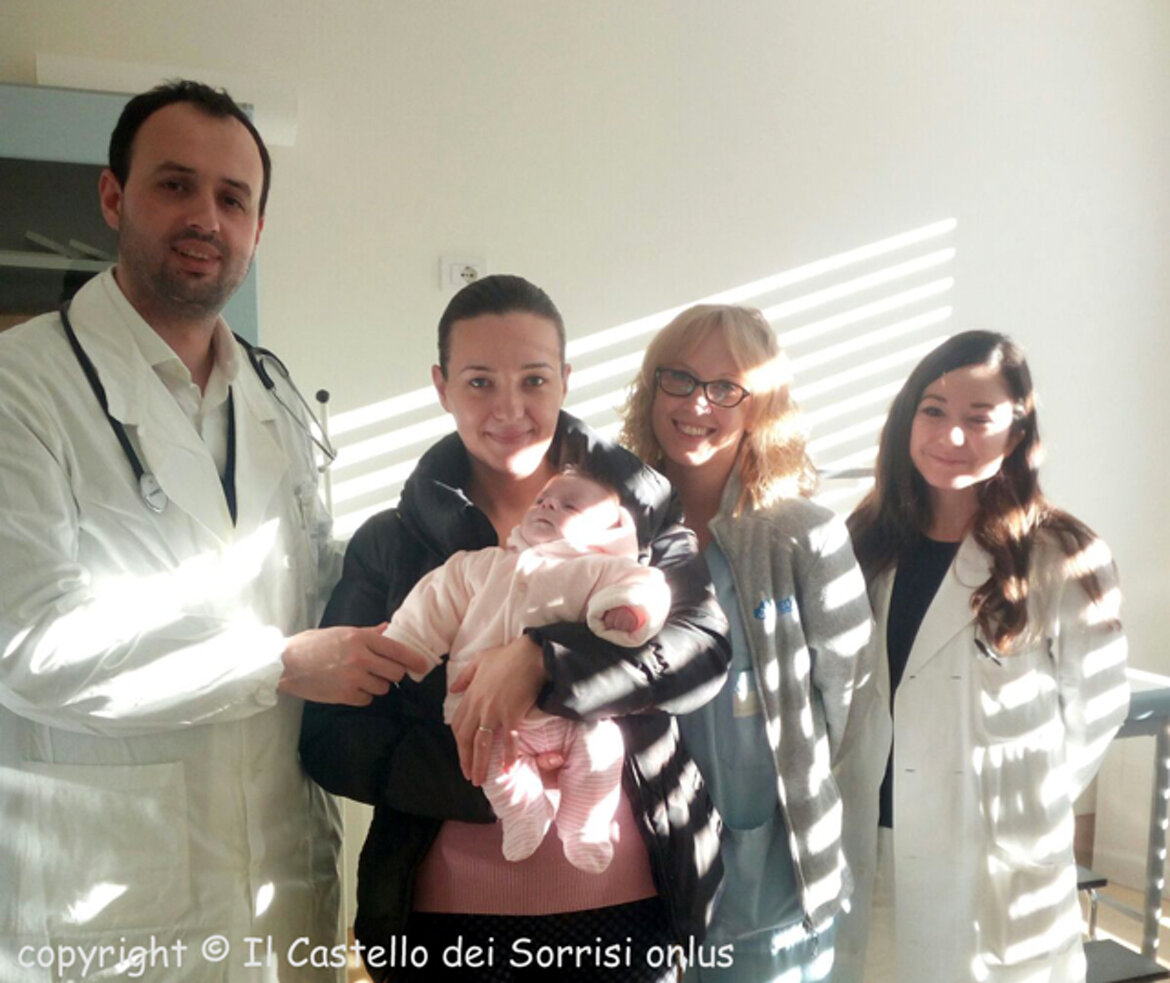 Il 18 novembre, a soli 8 giorni di vita, la piccola è giunta nella nostra città, accompagnata da mamma Leonida; con trasporto protetto assicurato dai nostri amici della Croce Verde di Verona, è stata immediatamente ricoverata in Terapia Intensiva Pediatrica dove è stata stabilizzata e messa in sicurezza. Conclusi gli approfondimenti diagnostici, il 22 novembre è stata subito operata ... un delicato intervento di 6 ore ben riuscito, che ha permesso di correggere completamente la sua malformazione. Grazie finalmente ad una saturazione ai massimi livelli, il suo visino - prima grigio - ha lasciato spazio ad un bel colorito rosa.