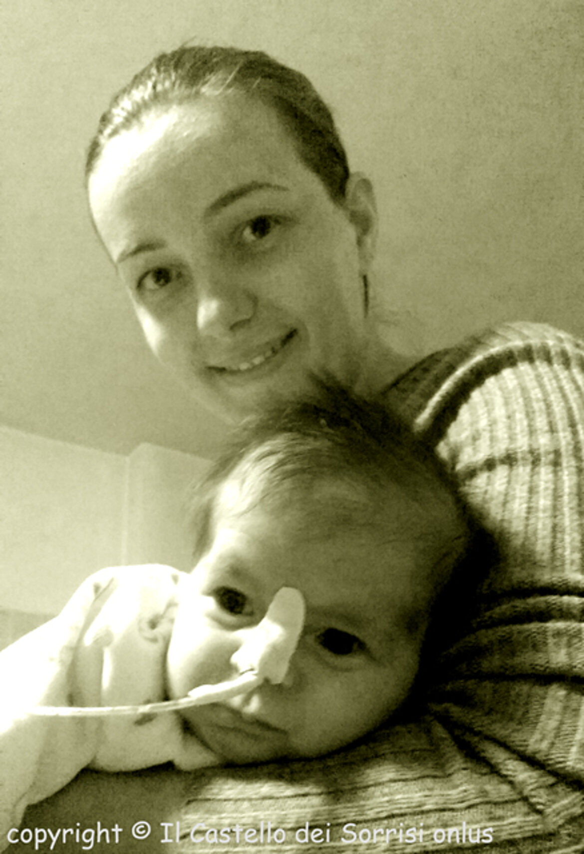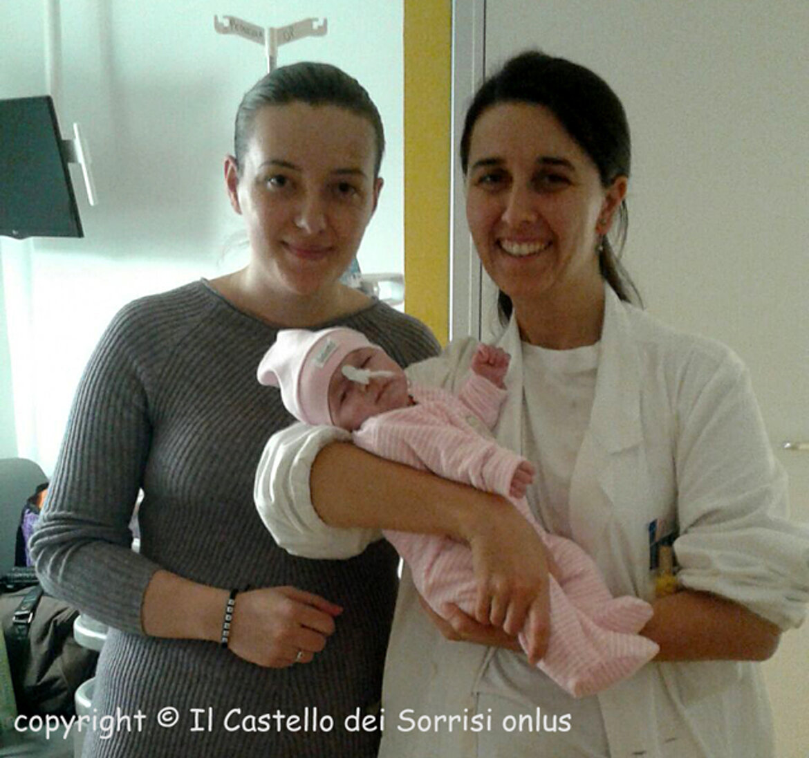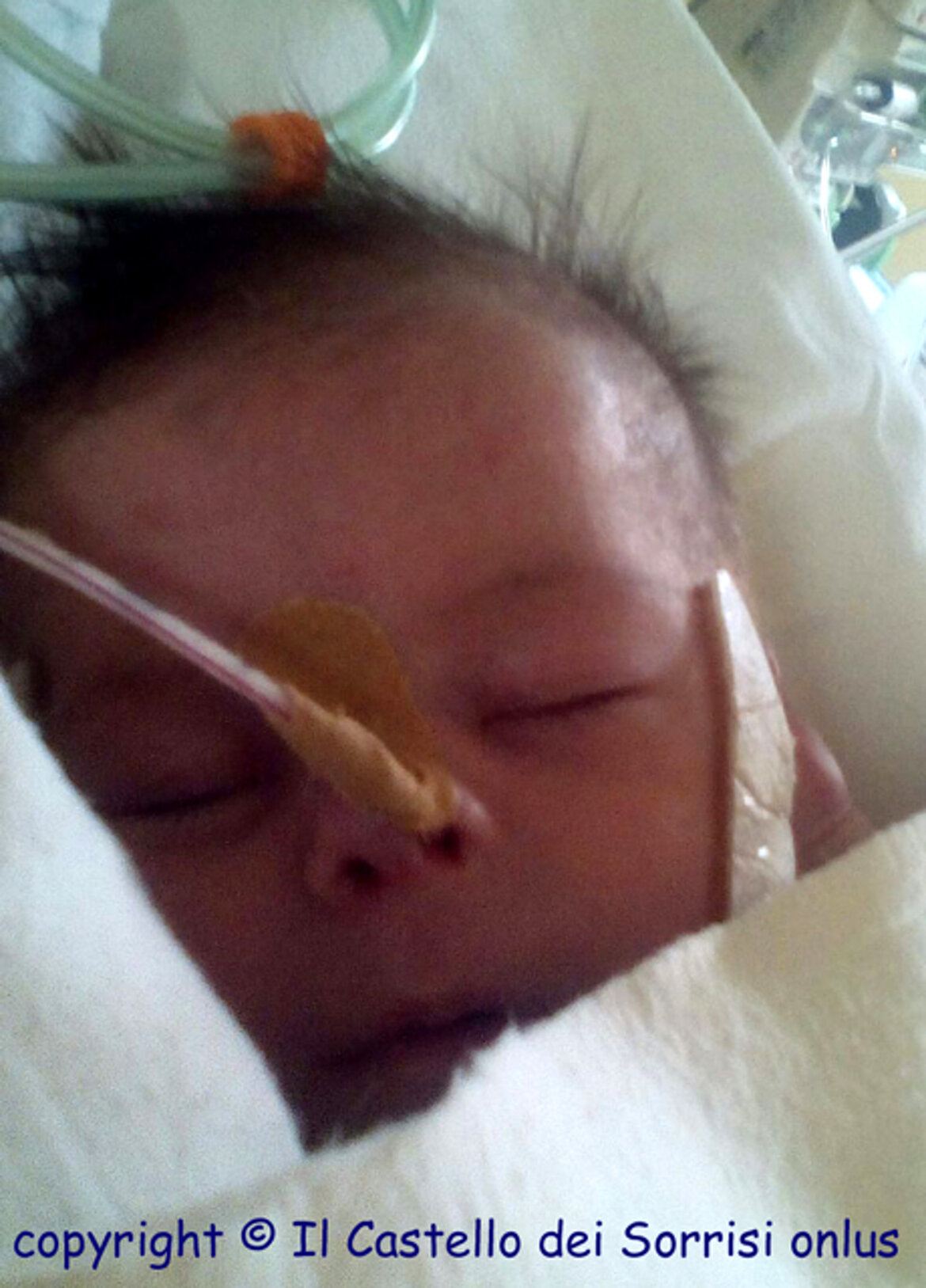 Il 18 novembre, a soli 8 giorni di vita, la piccola è giunta nella nostra città, accompagnata da mamma Leonida; con trasporto protetto assicurato dai nostri amici della Croce Verde di Verona, è stata immediatamente ricoverata in Terapia Intensiva Pediatrica dove è stata stabilizzata e messa in sicurezza. Conclusi gli approfondimenti diagnostici, il 22 novembre è stata subito operata ... un delicato intervento di 6 ore ben riuscito, che ha permesso di correggere completamente la sua malformazione. Grazie finalmente ad una saturazione ai massimi livelli, il suo visino - prima grigio - ha lasciato spazio ad un bel colorito rosa.